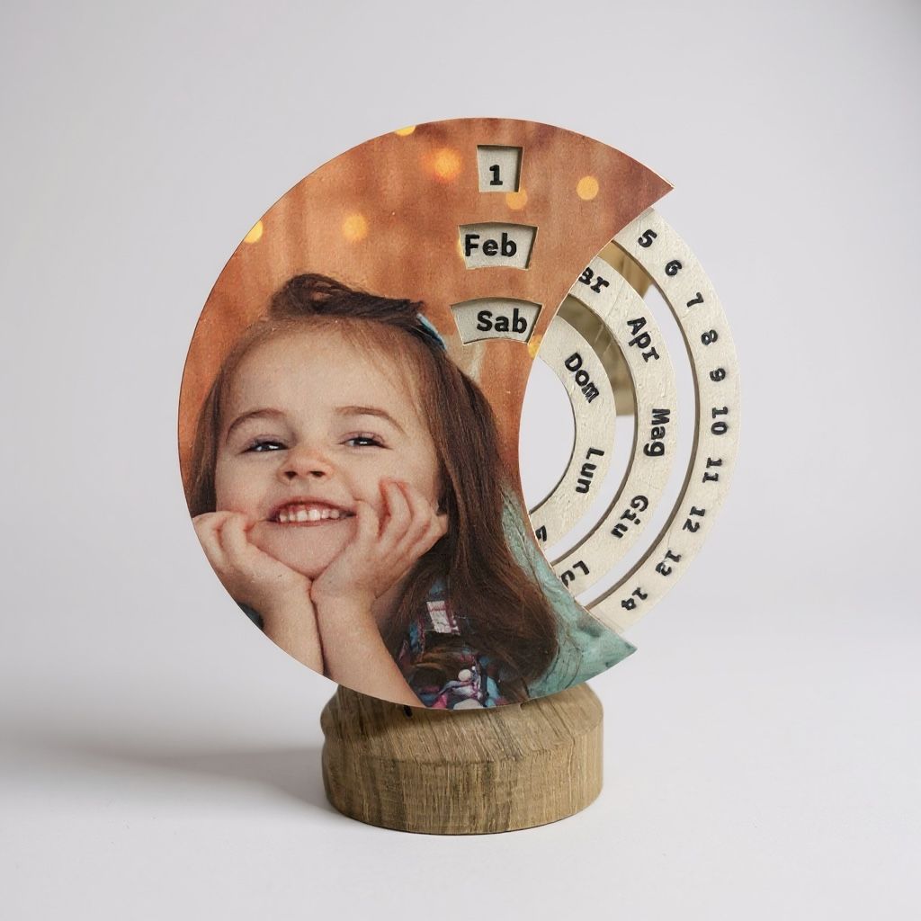 Questa versione del nostro calendario perpetuo ha la possibilità di caricare una foto e di poterla inserire come grafica nel fronte del prodotto