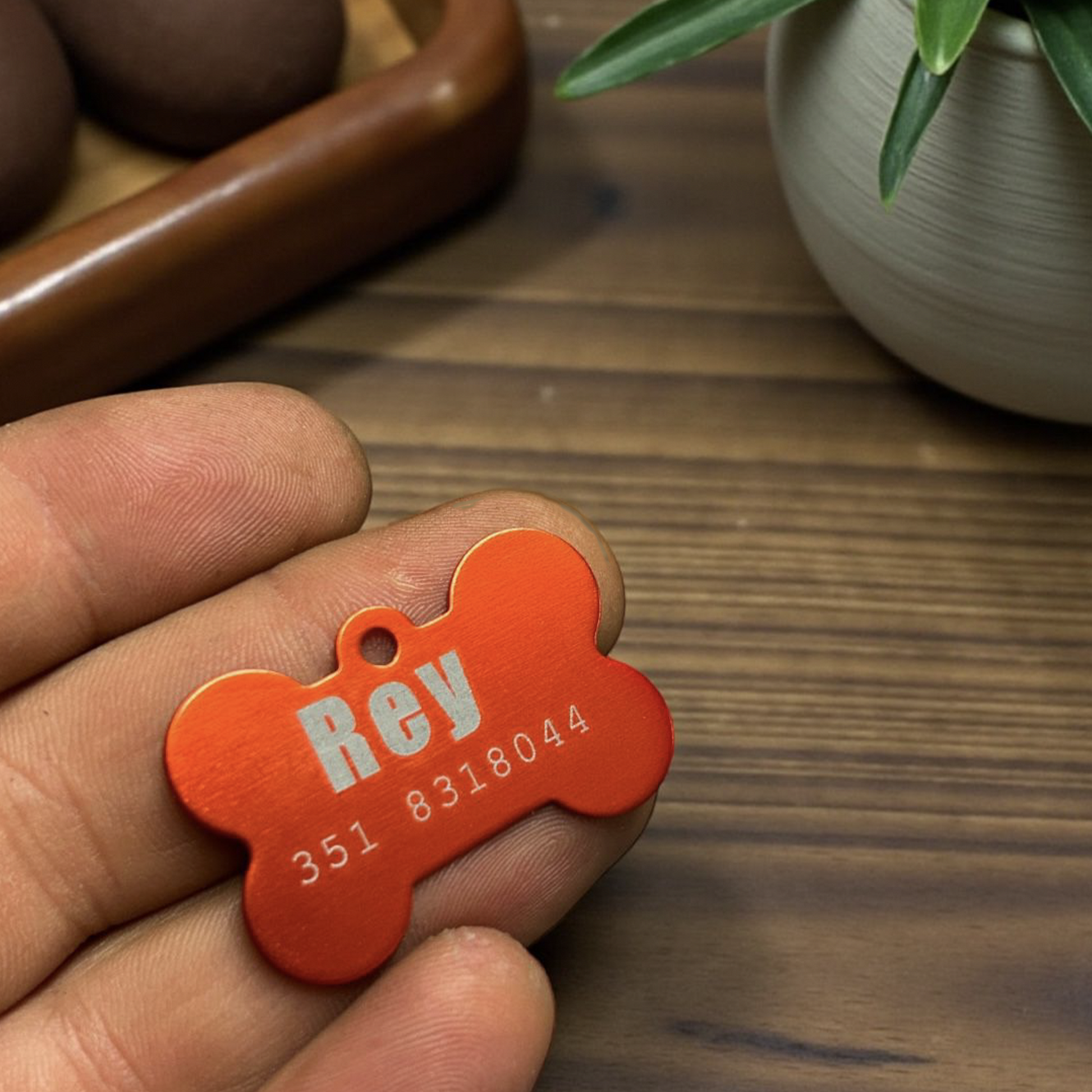 La medaglietta a forma di osso, dal colore vivace e dalla finitura lucida, è incisa con il nome del tuo animale e il recapito telefonico, assicurando stile e sicurezza in ogni momento. Un'idea regalo ideale per chi ama prendersi cura dei propri animali con eleganza e attenzione ai dettagli.