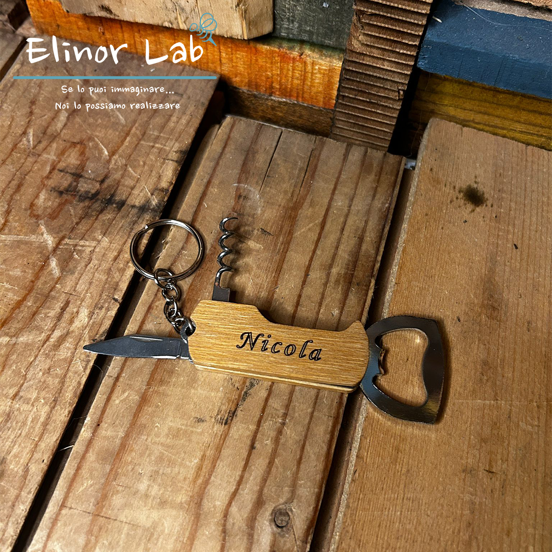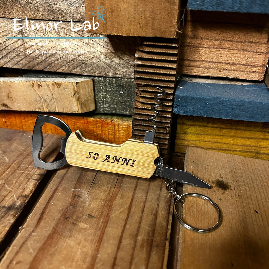 Se non sai cosa Regalare Fai Personalizzare in entrambe le Facciate, il Porta Chiavi Cavatappi in Legno e Acciaio, che oltre ad Essere Originale e' Molto Utile ed Economico