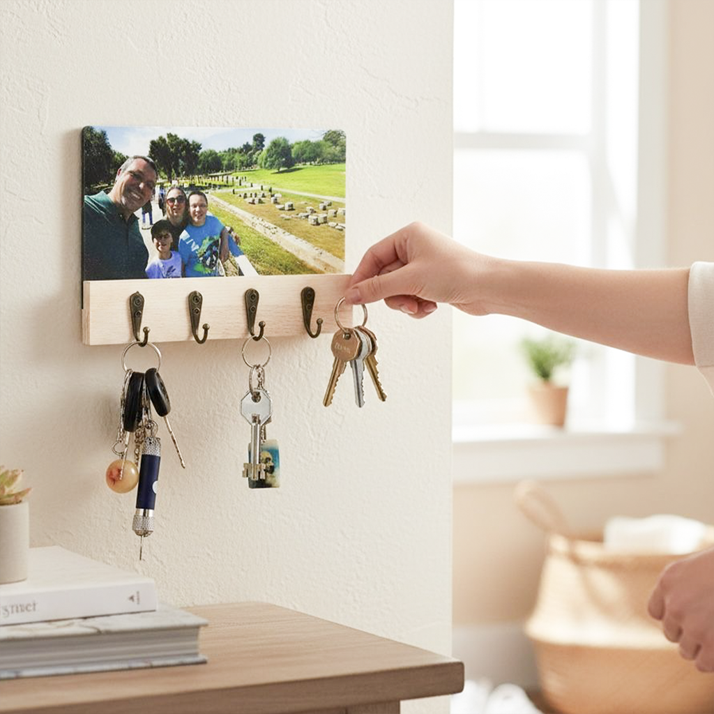 ElinorLab ™ APPENDI Chiavi da Parete in Legno con Foto Personalizzata